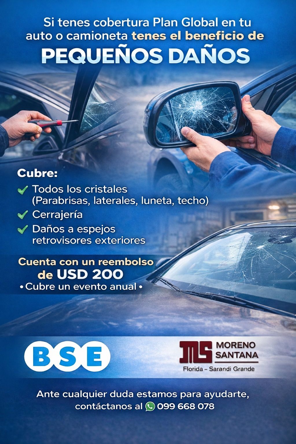Si tiene COBERTURA GLOBAL en su auto o camioneta, accede al beneficio de PEQUEÑOS DAÑOS.